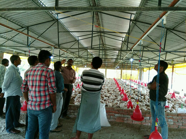 Introduction - Sri Maheshwar Shahi S/O sri Ashutosh Shahi is 36 year old of village & post Riyaon , Block- Gagaha District- Gorakhpur (U.P.) belongs to general caste community with 9 family members. His family condition was very poor and due to economical constraints he stopped study after intermediate. After that he started his parental occupation of Agriculture on 4 acre area by traditional system but output was very poor. He used to grow paddy and wheat for his survival under Paddy – Wheat cropping system but he was not able to fulfill the essential requirement of family members. One day he came KVK Belipar and met with KVK Scientists. After discussion he shown keen interest in training on Poultry farming and received training for 5 days 7-11.09.2015 . After completion of the training he started commercial broiler farming with the technical guidance of KVK Belipar in capacity of 7000 chicks in one crop.