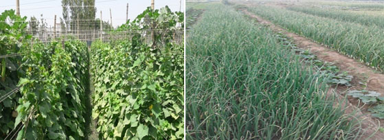Cultivation of cucumber on vertical machan technique and inter cropping of onion with cucurbits